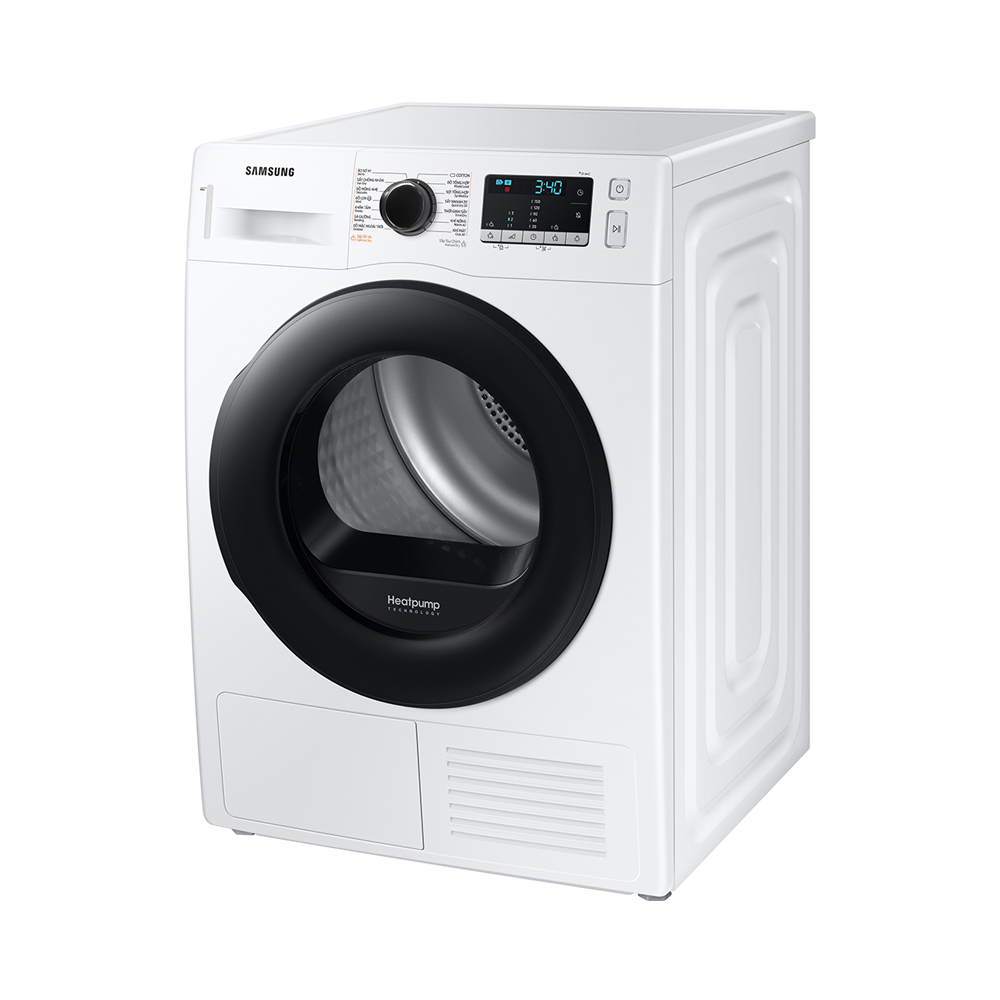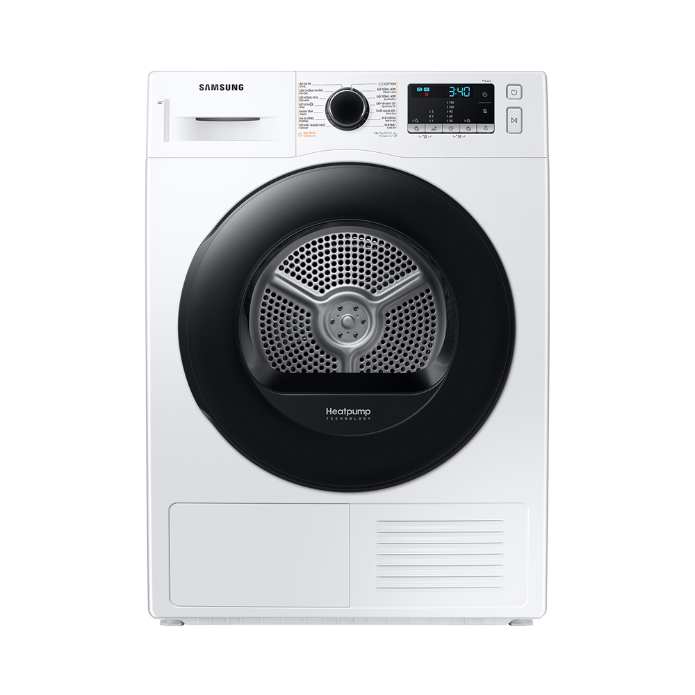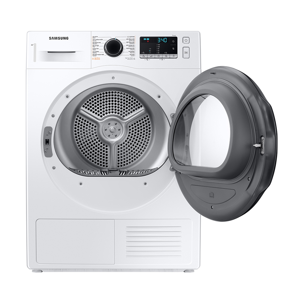 Chiếc máy sấy Samsung này có thiết kế cửa trước hiện đại, toàn bộ thân máy được bao phủ bởi gam màu trắng trung tính dễ dàng phối hợp với mọi không gian nội thất.