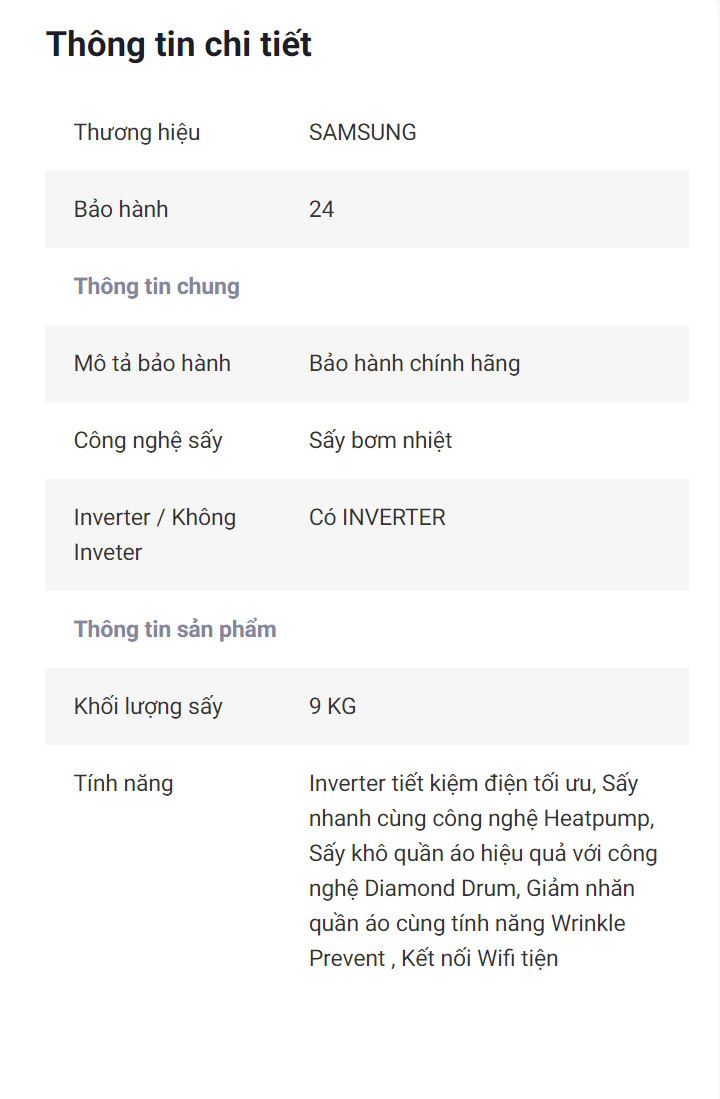 Dành cho gia đình có từ 3 – 5 người với khối lượng sấy 9 kg